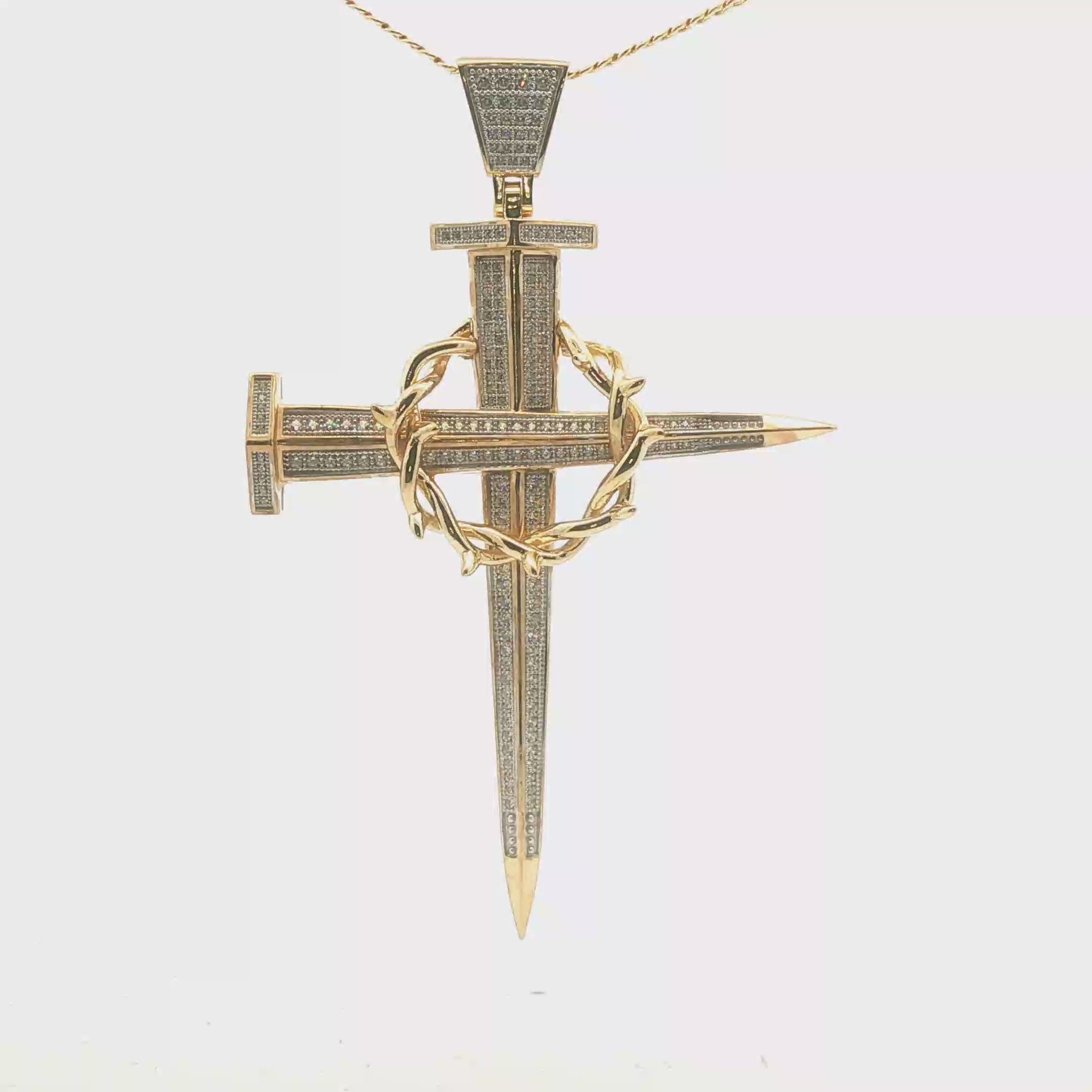Cruz elaborada en oro de 10 quilates, adornada con zirconias de alta calidad. Diseño elegante y moderno, ideal para surtir su joyería con piezas de gran demanda. Disponible para venta al mayoreo con garantía de autenticidad en el material y las piedras.